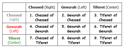 Turn the cup again counter clockwise for left of right and say “Gevurah of Chessed”. Place the cup and turn it again for center of right saying “Tiferet of Chessed”, drink and put it back.