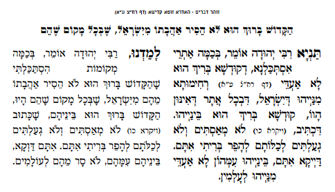 This paragraph from the Idra Zuta, refers to God promise to be with the Israelites even if they are in exile. His covenant for ever stands.