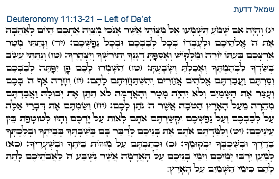 The fourth chamber is from Deuteronomy 11:13-21 , which is the second paragraph of the Shema prayer. It’s the left of Da’at and expresses judgment and mercy.