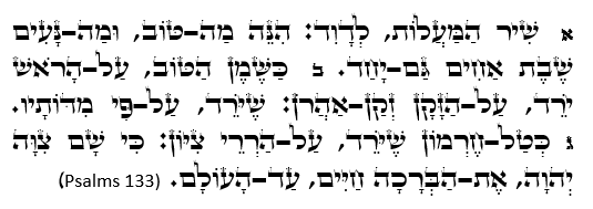 “It is like the precious oil upon the head, Running down on the beard, The beard of Aaron, Running down on the edge of his garments.”