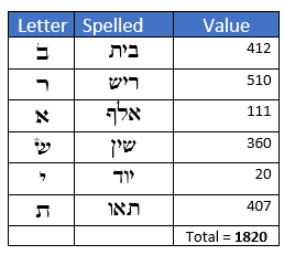יהוה = 26. The spelled value of the number 26 (עשרים שש) adds to 1820