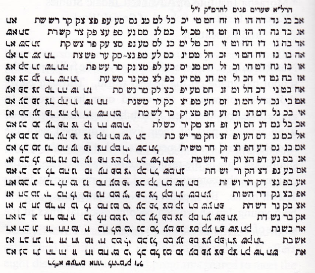 231 gates as arranged by Rabbi Moshe Cordovero ZT”L