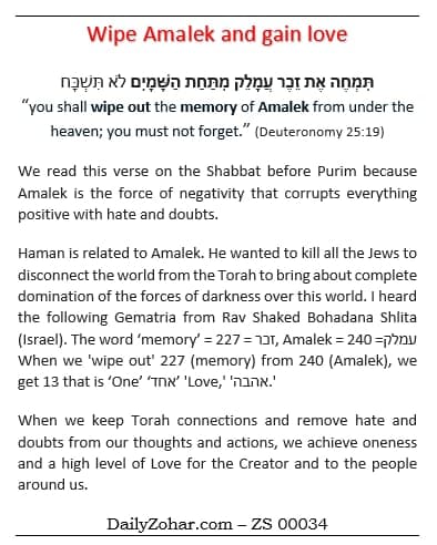 Zohar Sparks – 00034 – Wipe Amalek and gain love