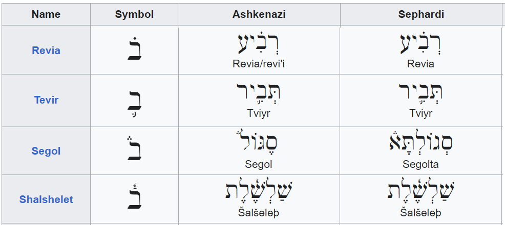 Parallel to the cantillation of Ravia is the Nikkud of Cholam. Shevarim corresponds to the Nikkud of Sheva. The voice should be raised higher with the cantillation of Ravia. The voice should be lowered with Tevir, Aramaic for Shevarim because it is Gevura. Teruah is the aspect of the Middle line called Shalshelet in the secret of the letter י Y between the two ‘מ’ as explained above. When the middle line, Teruah, and Shalshelet, joins the י Y, the Right line is revealed in its perfection and is called Segolta of the cantillations.