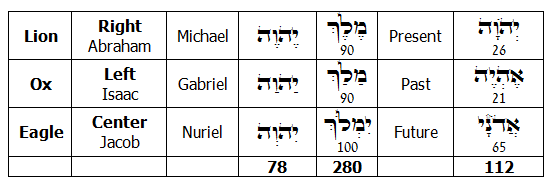 The four Holy Creatures of the Holy throne has four faces each and the Zohar reveals to us that these ‘faces’ are the four letters of the YHVH name.