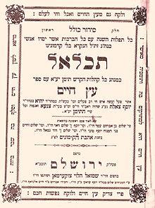 Tiklāl Etz Ḥayim, a siddur based on the Baladi-rite, with the commentary ʻAnaf Ḥayim appended at the end of volume 1 (editors: Avraham b. Ḥayim Al-Naddaf and Shalom b. Yosef Iraqi), Jerusalem 1899.