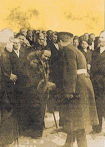When the king approached the stage, he surveyed all the people who stood on it, and started walking in Teitelbaum's direction, who was holding his rabbinical stick in one hand and his hat in the other. Two priests started walking towards the king, but he ignored them. Teitelbaum, suddenly noticing what was happening, saluted and said the blessing "Shenatan MiChvodo LiVnei Adam" (who gave from his honor to human beings). The king gave Teitelbaum his hand. The moment was documented by a Jewish photographer, and was published in the Romanian press. Several days later, the king was asked why he approached the Orthodox rabbi first, and he responded: "Immediately when I walked toward the stage, I surveyed all those who were standing on it. My heart was attracted to this rabbi due to his appearance that radiated spirituality (lit., Yiddishen geistlichen rabbiner)." The king's response was published in the country's Jewish press.