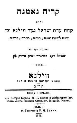 Ḳiryah Ne'emanah, a history of the Jews of Vilnius, ib. 1860