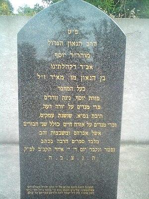 Rabbi Joseph ben Meir Teomim (1727–1792; Hebrew: יוסף בן מאיר תאומים) was a Galician rabbi born at Lemberg. While still young he succeeded his father in the position of preacher and rabbinical instructor in the yeshivah of Lemberg. Later he went to Berlin, where he stayed several years in the bet ha-midrash of Daniel Itzig. Then he resumed his former position at Lemberg, and in 1782 was appointed rabbi at Frankfurt an der Oder, where he remained until his death. He was buried on the Jewish cemetery at Frankfurt/Oder.