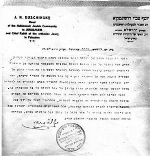 Dushinsky was known for his strong opposition to Zionism, and spoke to the newly formed United Nations against the creation of the Zionist State.