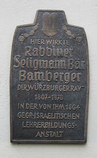 Seligman Baer (Isaac Dov) Bamberger (born Wiesenbronn, near Kitzingen, Bavaria, 6 November 1807; died Würzburg 13 October 1878) was a Talmudist and a leader of Orthodox Judaism in Germany. Between 1840 and his death, he served as rabbi of Würzburg, and is therefore often referred to by his position as the Würzburger Rav.
